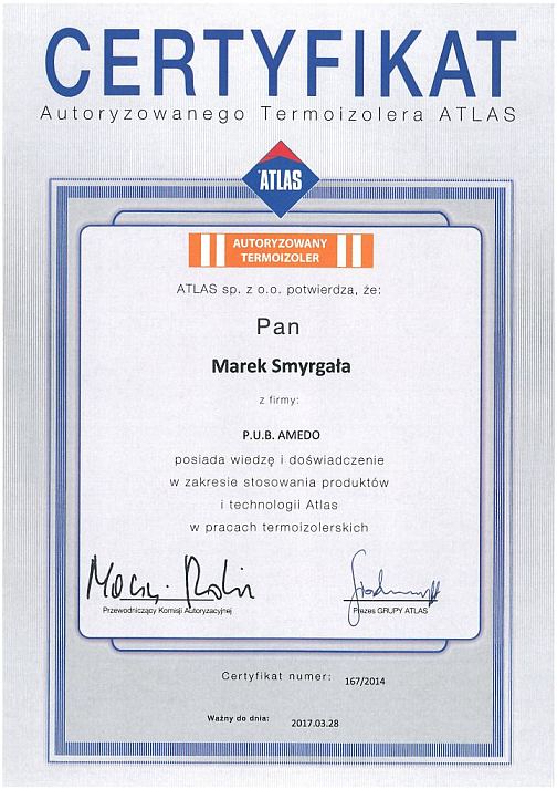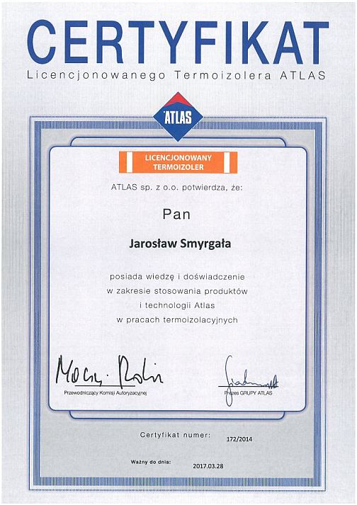 Nasza firma jako pierwsza w Polsce zdobyła autoryzację firmy ATLAS sp. z o.o. w dziedzinie prac termoizolerskich. Nieustanne szkolenia i kursy pozwalają nam na zapoznawanie się z nowościami i technikami w pracach remontowo-budowlanych.